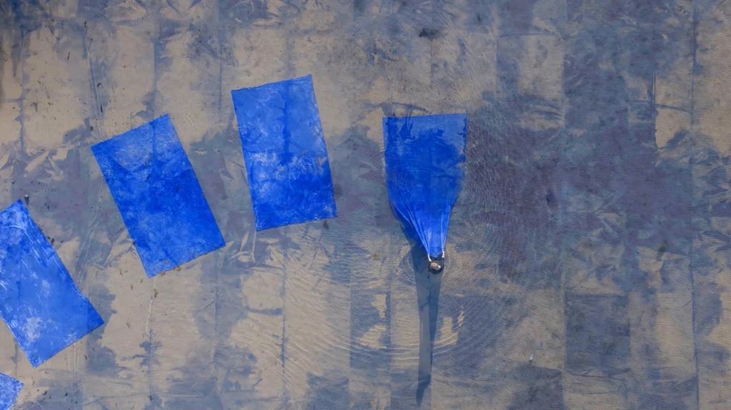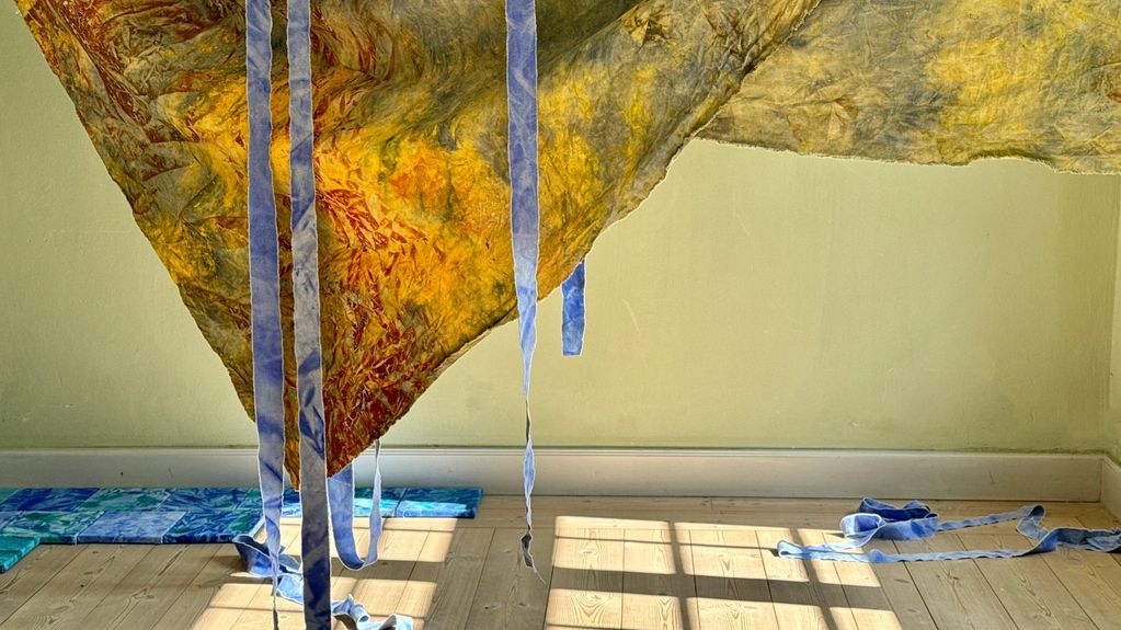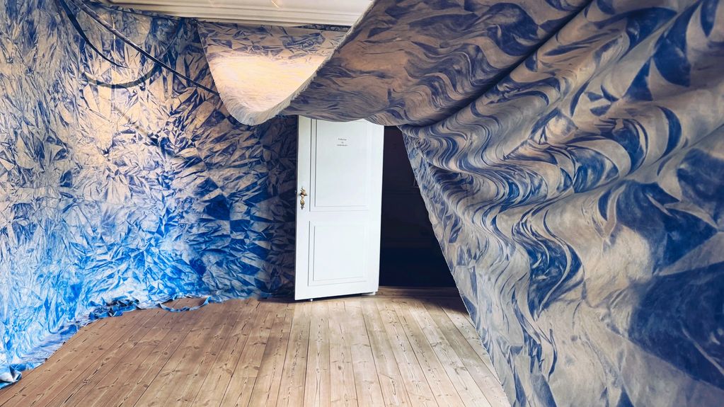 Site-Specific installation of un-stretched and stretched canvases in the museum's four rooms